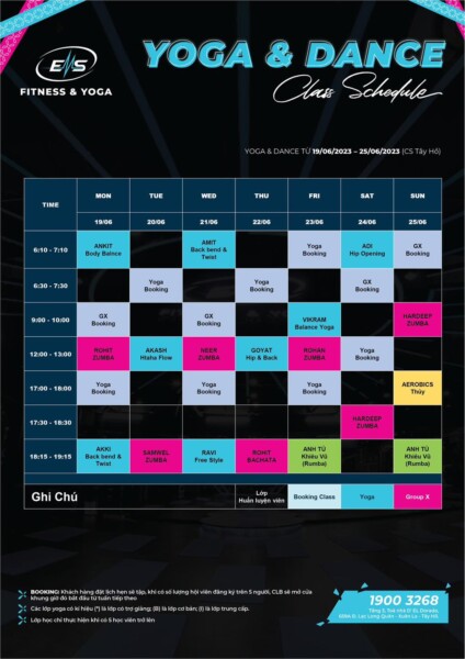 Lịch tập Yoga & Dance Hoàng Ngân