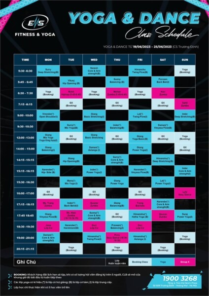 Lịch tập Yoga & Dance Hoàng Ngân