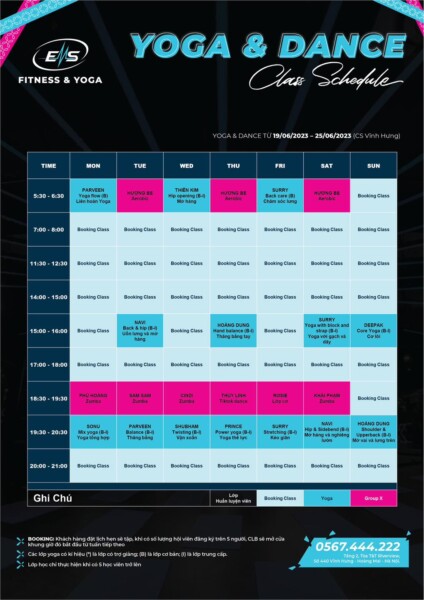 Lịch tập Yoga & Dance Vĩnh Hưng