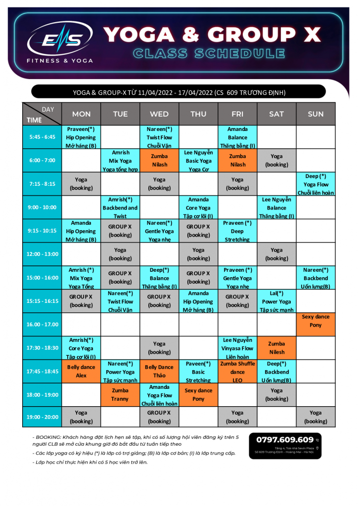 Lịch tập Yoga & Dance Hoàng Ngân